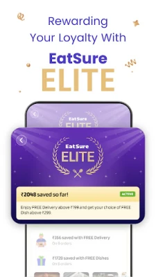 🚀 EatSure Elite Loyalty Program: Step into the world of EatSure Elite, where it's more than just perks—it’s a status. As an Elite member, you'll unlock exclusive privileges—enjoy FREE Delivery on orders above ₹199, choice of FREE Dish on orders above ₹299, and the power to upgrade your FREE Dish with SurePoints. Why settle for ordinary when you can Be an Elite and level up your food game like never before!