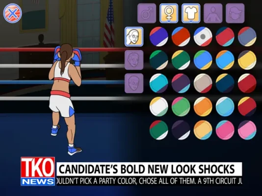 Create your own political party, lace up your boxing gloves, and punch your way to the White House in Election Year Knockout! In a country torn apart by its political divide, the nation has resorted to boxing to settle its differences. Fight your way through hilarious political opponents before squaring off with president Donald Thump himself!