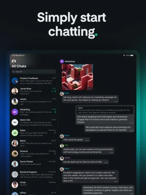 • Rich messaging features: emoji reactions, replies, polls, pinned messages and more.