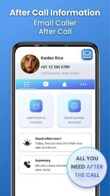 Post Call Email Function: Email app offers a unique post-call feature that enhances contact and email management and communication. After a call, users can quickly add the caller's email to their contacts, ensuring that important details are stored and easily accessible. Additionally, the app allows you to send the caller's number as an email, streamlining follow-up communication and making it easier to maintain professional and personal connections. This functionality is designed to keep your contacts and email organized and your communication seamless, ensuring you never miss a crucial detail.