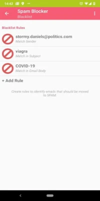 • Blacklisting: Define rules for emails that should be blocked. [Ex: Subject is "Viagra"]