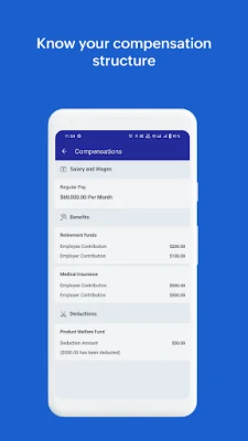 ★ Compensation Details: View your overall pay structure - salary and wages, benefits, and deductions on the go.