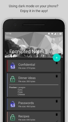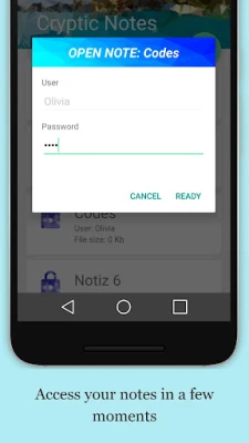 This app provides an easy way to keep your notes protected. You can individually choose for every single note to either lock it by password, fingerprint or to keep it unlocked.