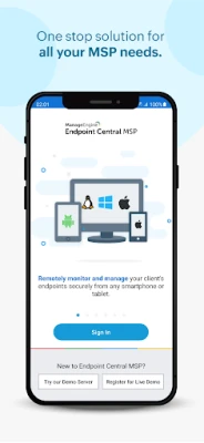 ManageEngine Endpoint Central MSP android app formerly known as Desktop Central MSP is exclusively packaged for service providers to seamlessly connect and interact with customer servers, laptops and desktops across the globe. It enables IT service providers to manage customer systems on the go and frees them from being stuck in office to do these routines, thereby making them more productive.