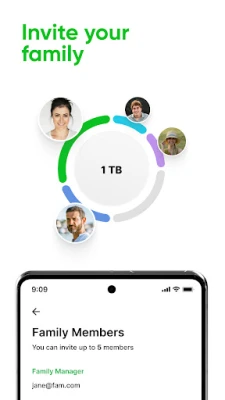 INVITE YOUR FAMILY: Invite up to 5 family members to any paid plan at no extra cost. Only your storage space is shared, not your data. Each member will receive their own private space.