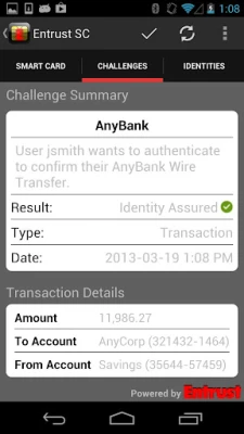 The Entrust IdentityGuard Mobile Smart Credential provides an innovative yet relevant authentication solution and is deployed on the IdentityGuard enterprise authentication platform. IdentityGuard’s comprehensive capabilities are designed to meet authentication needs across your organization including embedded support for diverse user group needs, cloud security, mobile security, and adaptive authentication all on a platform with unmatched deployment flexibility and agility.