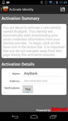 Entrust Mobile Smart Credential can only be used in conjunction with credential issuing organizations that have created an Entrust IdentityGuard account for you. To use the application, you will need to activate the Mobile Smart Credential with your credential issuer. Once you have downloaded the application please consult the organization you whom you wish to use the Mobile Smart Credential for activation instructions.