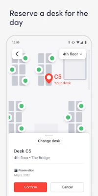 Know where to go and who to meet in the office. Find where your coworkers are sitting, book meeting rooms, see visitor details, and know where to pick up deliveries–all from the interactive workplace map.
