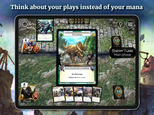 You start the game with a hand of five cards, and draw a new card at the start of your turn. Your cards represent powerful champions that will fight for you or game changing events you can use to thwart your opponent.