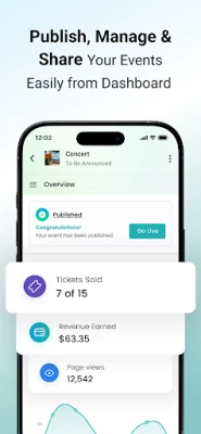 Create events: you can create your event by providing all the required information, making your organisation profile and setting your ticket price anytime with your fingertips.
