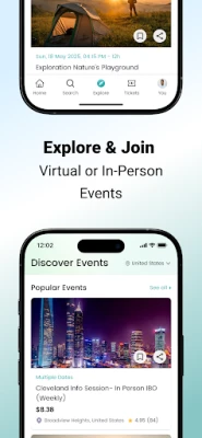 • Discover popular and new online and venue events