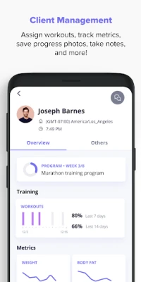 Everfit for Coach allows fitness coaches to: Manage clients on the go Direct message clients Customize exercises and create workouts Assign training and log workouts Track body metrics, progress photos, and notes