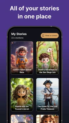 Download now and explore the magic of creating short stories, stories for kids, and beautiful, custom AI-generated storybooks with just a prompt.