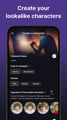Upload your own images or use Fable's powerful AI photo generator to craft real, recurring characters that become the stars of your stories.