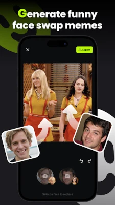 • Upload your videos and photos for a one-click face swap.