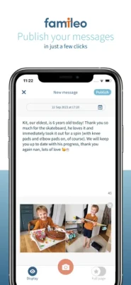 - Sending messages: Simply take a photo using your smartphone, or import a photo from your gallery. Add your text and post your message. You can alternate the layout of your gazettes between classic photos, photo collages, and even use the full page option for certain photos.