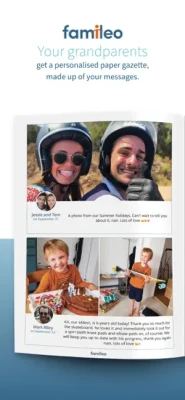 Each family member sends their messages and photos via the application, and Famileo transforms them into a personalised printed gazette. Thanks to the family wall, the entire family can enjoy the stories and photos shared, whenever they like. Grandparents will love reading all about their relatives' news and seeing how much they care !