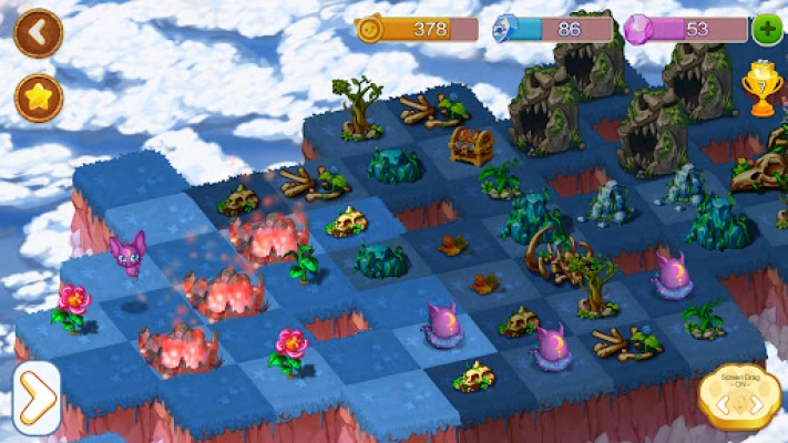 ⭐ Complete levels on the magic floating island, heal them by merging 3 the Diana statues and collect rewards