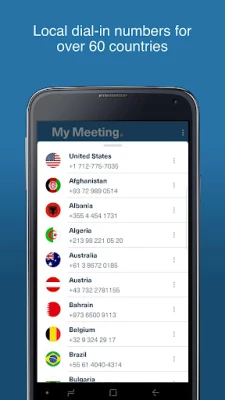 Free Conference Call HD provides a quick and easy way for you to dial into conference calls without having to remember the dial-in credentials. Save all of your conference call dial-in numbers and access codes using this app. With the Free Conference Call HD you can store and create multiple accounts, distribute invitations and instantly dial into a conference call via 3G/4G data network and or regular mobile carrier.