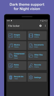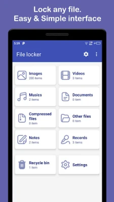 Just set your preferred lock type and save your secret files in a private place easily. You can restore the items and share them as-well.