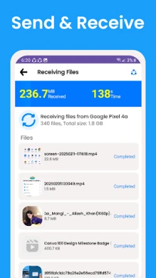 With this data transfer app, whether you're moving files between devices or sending them to friends, the process is quick, seamless, and doesn’t require an internet connection. Large files are no longer a hassle, as data transfers are optimized for efficiency without compromising quality. File share app file transfer intuitive interface ensures that even first-time users can navigate the sharing process with ease, making file sharing smooth and fast.