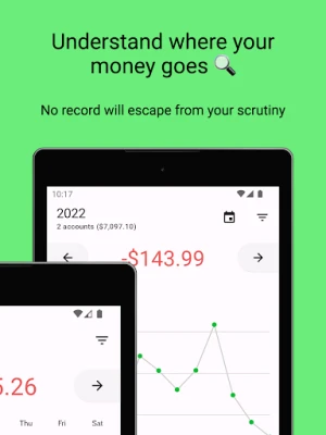 👉 Records: Keep track of all your expenses and income with a simple, detailed list that's ordered by date for quick viewing.