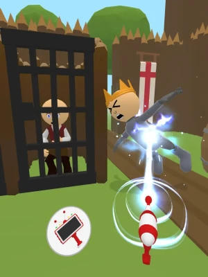 Complete the levels and save cave people, dinosaurs, ancient Egyptians, Cleopatra, medieval peasants, knights in armor, King Arthur, Lady of the Lake, pirates, cowboys, sheriffs, bandits and some cyber punk cyborgs.