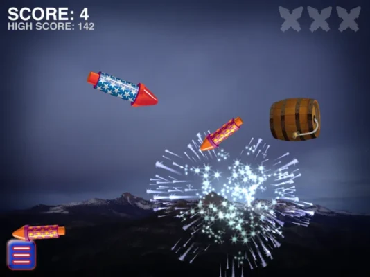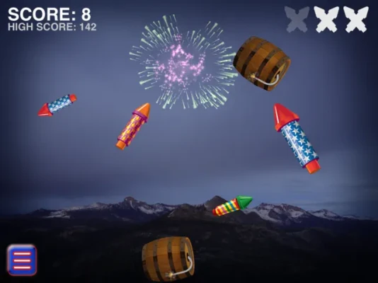 + Leaderboard + Fun and Patriotic + Slash The Flying Fireworks And Watch Them Explode + Star Spangled Banner Soundtrack + Colorful Firework Displays + Majestic Mountains In Yosemite Background + Easy To Play Hard To Master