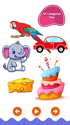 * Baby learning games with 11 flashcard categories and over 120 words (including Pets, Sleeping Time, Vehicles, What I Do?, Clothes, Farm Animals, Food, At the Park, Eating Time, Bath Time, and Toys).