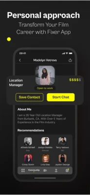 • Connect: Easily build your professional network with FIXER's intuitive platform, designed for film industry professionals to connect and communicate. Save contacts for future projects, engage in real-time chats, and exchange ideas with like-minded individuals from all over the world.