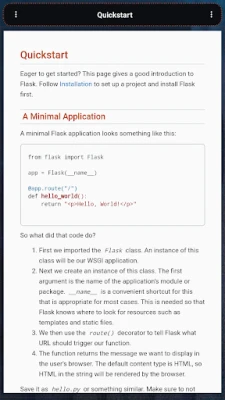 This is an app that allows you to learn Flask web application from start to finish offline. Flask is a micro web framework written in Python. It is classified as a microframework because it does not require particular tools or libraries. It has no database abstraction layer, form validation, or any other components where pre-existing third-party libraries provide common functions.
