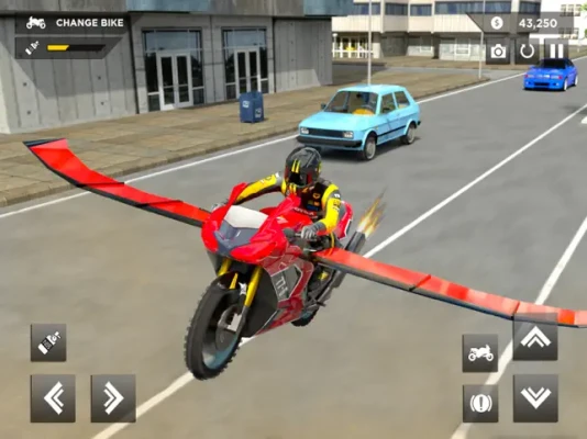 Welcome to the Flying Bike Real Simulator 3d game. It is a new dimension of thrill and adventure flying Game. Fly the bike simulator to become an extreme bike rider. Start the engine and go on a lifetime adventure with desert stunts bike racing thrills in the Flying Bike Real Simulator game. Sports bike seats are waiting for you to play with the new flying bike simulator. Compete with hard-core bike best game players, bike game fans & bike racing gamers. Become the best bike racer, accelerate your racing bike to perform extreme stunts on offline & online tracks. Challenge the competition as you drive through a variety of treacherous tracks while enjoying the realistic bike physics and fast-paced gameplay. This new game let you do bike stunts on impossible tracks. As you unlock new fast bikes with unique designs! Fly at high speeds through the city on your Flying Bike Real Simulator 3d. Witness the definitive bike racing experience with our games. Bike Racing 3D is easy to pick up but hard to master which will keep you in the zone for hours. Here is your chance to step up and prove that you are the most intense and competitive biker!