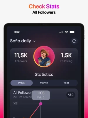 Stay on top of your Instagram with Followers, Unfollowers Reports, the ultimate tool for tracking your followers. Get detailed analytics on who follows, unfollows, and interacts with your content. Whether you're a social media influencer, a business, or just curious, our app provides the insights you need to manage your Instagram account effectively.