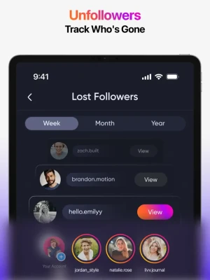 - Follower Analytics: See who follows and unfollows you in real-time.