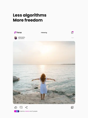 Redefine the way you connect, share and explore the world. Say goodbye to addictive platforms and embrace a new era of personalized experiences, quality content and freedom. Welcome to Forus App.