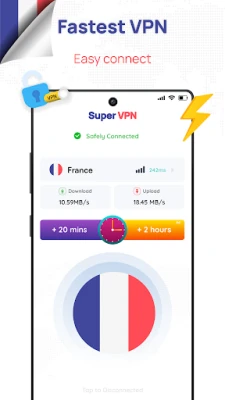 Welcome to France VPN Proxy Master, your go-to solution for secure and reliable VPN servers in France. With our Super fast and high VPN speed, you can easily get a French IP address and enjoy seamless browsing, streaming, and gaming experiences. Connect to our French VPN or París servers with just a tap and experience lightning-fast speeds. 🚀