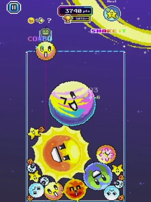 - Not your regular watermelon game : Drop bombs to destroy blocking planets and shake the screen to shuffle the board!
