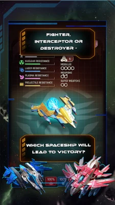 Whether you will succeed in this action game highly depends on the right strategy. Choose an appropriate spaceship to liberate a planet: Will you choose the Fighter, the Interceptor or the Destroyer? All of them have completely different properties: speed, maneuverability, equipment capacity, and size of the cargo hold – there's the perfect spaceship for every mission!
