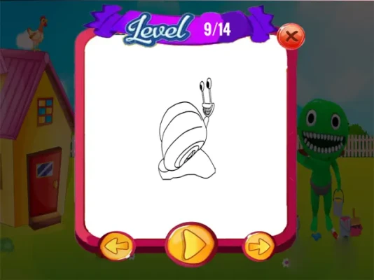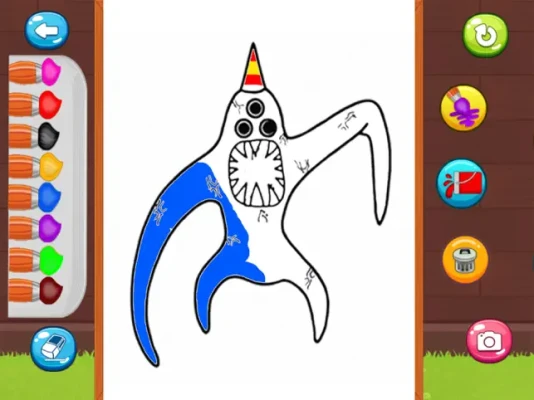 Garten Monster Banban Coloring app has many features including high-quality and easy to draw your first coloring pages, saving your work, having fun playing Jigsaw and Quiz, and getting information by answering quiz questions.