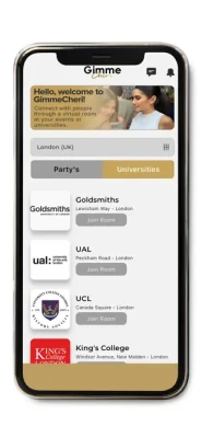 Designed to break the ice and make meeting new people effortless, Gimme Cheri offers virtual rooms tailored to your university or the event you're attending.