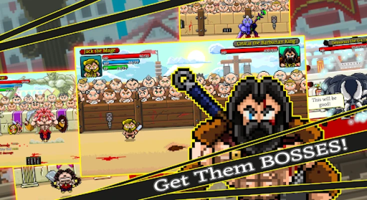 Fight through five Chapters of constantly changing, randomly generated gladiators.