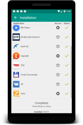 You have own Repository of applications where you can save applications as Market links or backup their packages (APK) with ability to install packages from backup later. To install application packages from backup you have to accept installation app packages permission for Glextor App Manager. Also you can share application packages using Android file sharing feature.