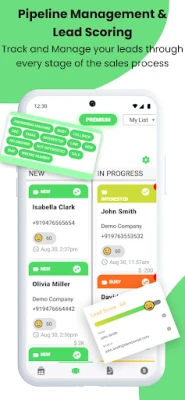 Setup custom contact status, after every call set the contact a status. You can visualise the contacts by status. Set Lead scores and filter the most valuable leads to you.