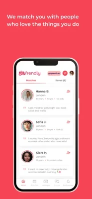 Gofrendly is designed to help women make new friends in their local area. Our app makes it easy to connect with other women who have similar interests and lifestyles, allowing members to build meaningful friendships. With features like activities, matches, groups and messaging, Gofrendly makes it simple for women to expand their social circle and connect with like-minded individuals.