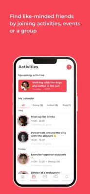 * Personal in-app activity calendar. You’ll never be bored again! Create private or public activities, join other members’ events or the activities that Gofrendly creates (webinars, events). Why not train at the outdoor gym, wander a flea market, go on a trip or meet for coffee?