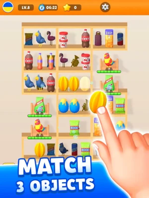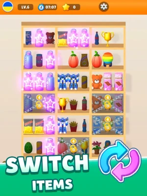 -Match-3 Puzzles: But wait, there's a twist! To place the goods onto the shelves, you must solve exhilarating match-3 puzzles. Swap adjacent items to create rows or columns of three or more identical items and watch them disappear.