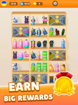 -Earn Rewards: Successfully completing levels will reward you with coins and stars. Use these rewards to unlock new shelves, power-ups, and other exciting features as you advance through the game.