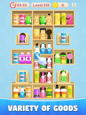 Come and challenge new adventures with your partners! We have tons of puzzles waiting for you to solve. Each level will have different products waiting for you to organize, and you can get free gold coins by passing the level. You can also get a lot of prop rewards to make your supermarket bigger and more beautiful!