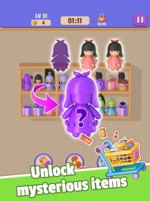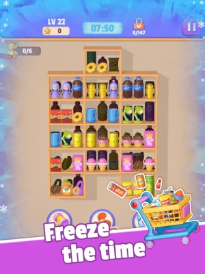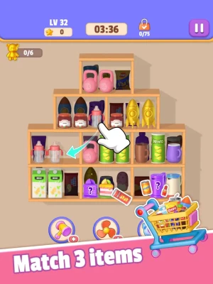 2. Sort and clear three identical products, and then the products behind the shelves will appear.