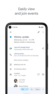 • Never miss an event or task on the go - On Wear OS devices, Google Calendar notifies you on time and supports tiles and complications.